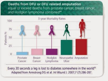 Diabetes remains the 7th leading cause of death in the United States in 2010, with 69,071 death certificates listing it as the underlying cause of death, and a total of 234,051 death certificates listing diabetes as an underlying or contributing cause of death1. One of the common contributing causes of death in diabetes is a diabetic foot ulcer (DFU), and if left untreated could lead to lower extremity amputation (LEA). Five-year mortality rates after new-onset diabetic ulceration have been reported between 43% and 55% and up to 74% for patients with lower-extremity amputation2. These rates are higher than those for several types of cancer including prostate, breast, colon, and Hodgkin’s disease.